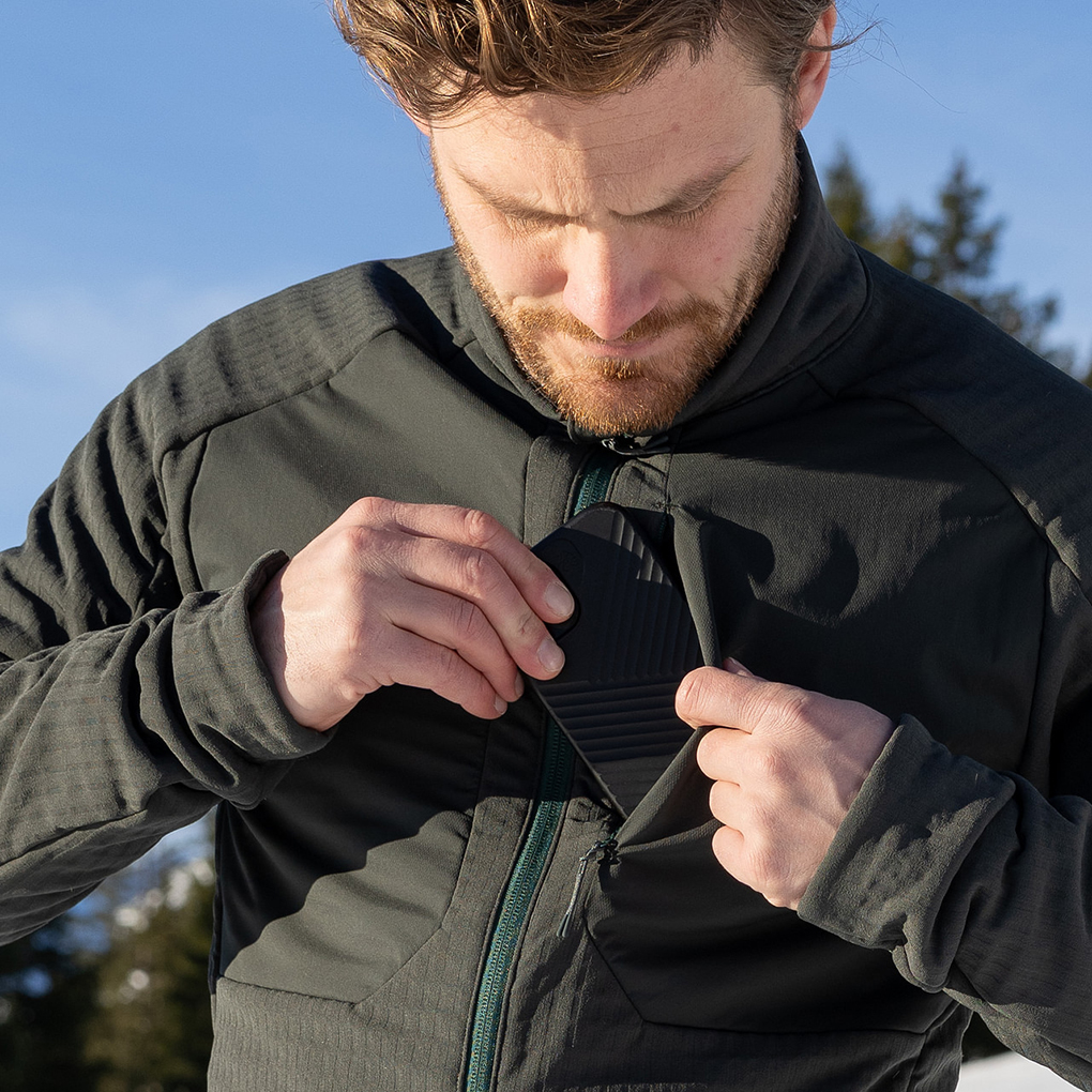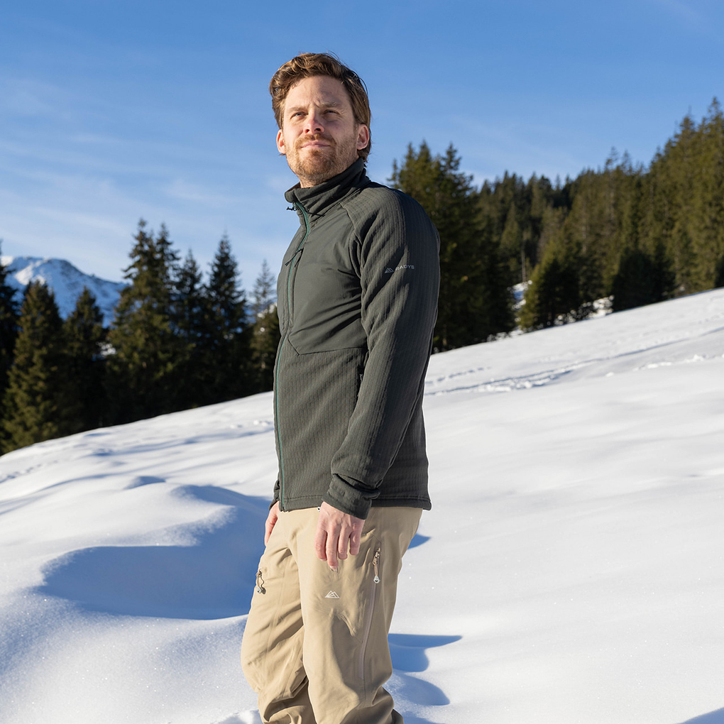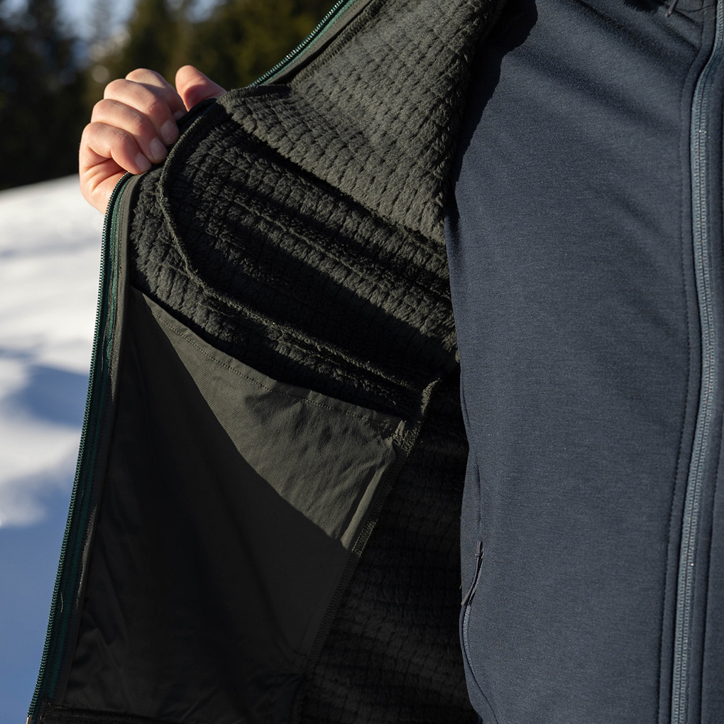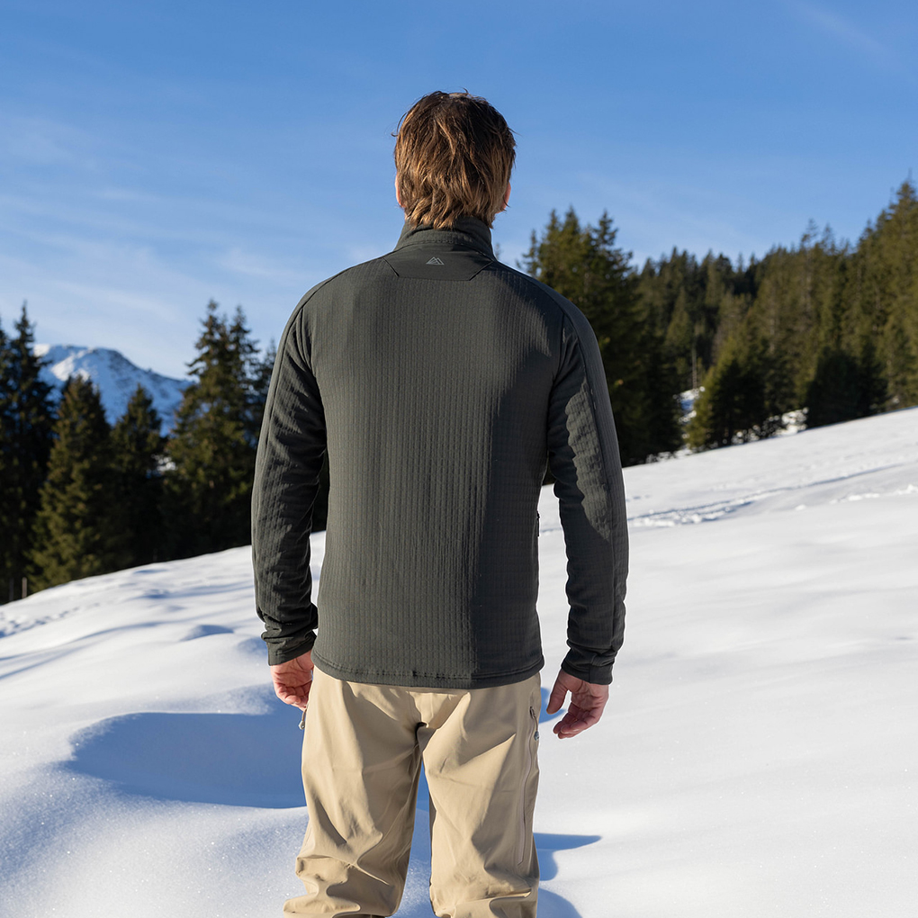 La couche intermédiaire R4 offre une isolation thermique légère, une grande élasticité et une sensation agréablement douce. Il est respirant et assure un confort optimal lors d'activités exigeantes en mouvements.