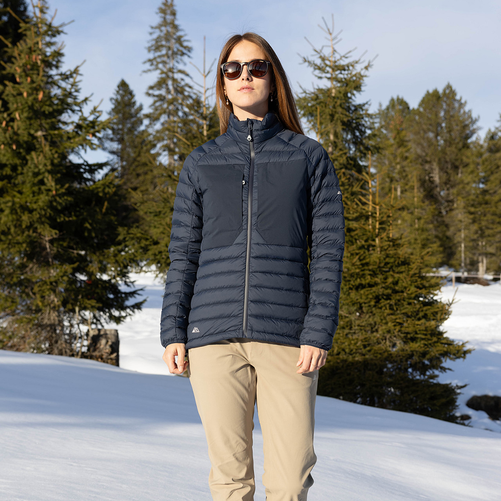 Extra leicht, sehr warm und kleinst verpackbar: Die R3 Light Down Jacket W für Damen ist die perfekte Performance Daunenjacke für jede Gelegenheit ideal als zusätzliche Schicht unter der Wetterschutzjacke oder solo in der Übergangszeit. Du suchst eine Jacke für Damen, die deinen Körper gezielt wärmt und gleichzeitig kaum Gewicht noch Volumen hat? Diese Daunenjacke kombiniert einen äusserst leichten, strapazierfähigen 15 Denier-Aussenstoff aus Polyamid mit sehr hochwertigen Gänse-Daunen (90%, kombiniert mit 10% Kleinfedern). Die Rücksprungkraft der Daune verfügt über erstaunliche 800 cuin. Praktische Details wie zwei Reissverschluss-Brusttaschen, zwei Fronttaschen und eine Mesh-Innen-Verstautasche machen die Jacke zu einem vielseitigen Begleiter, der sich überall kuschelig warm anfühlt.