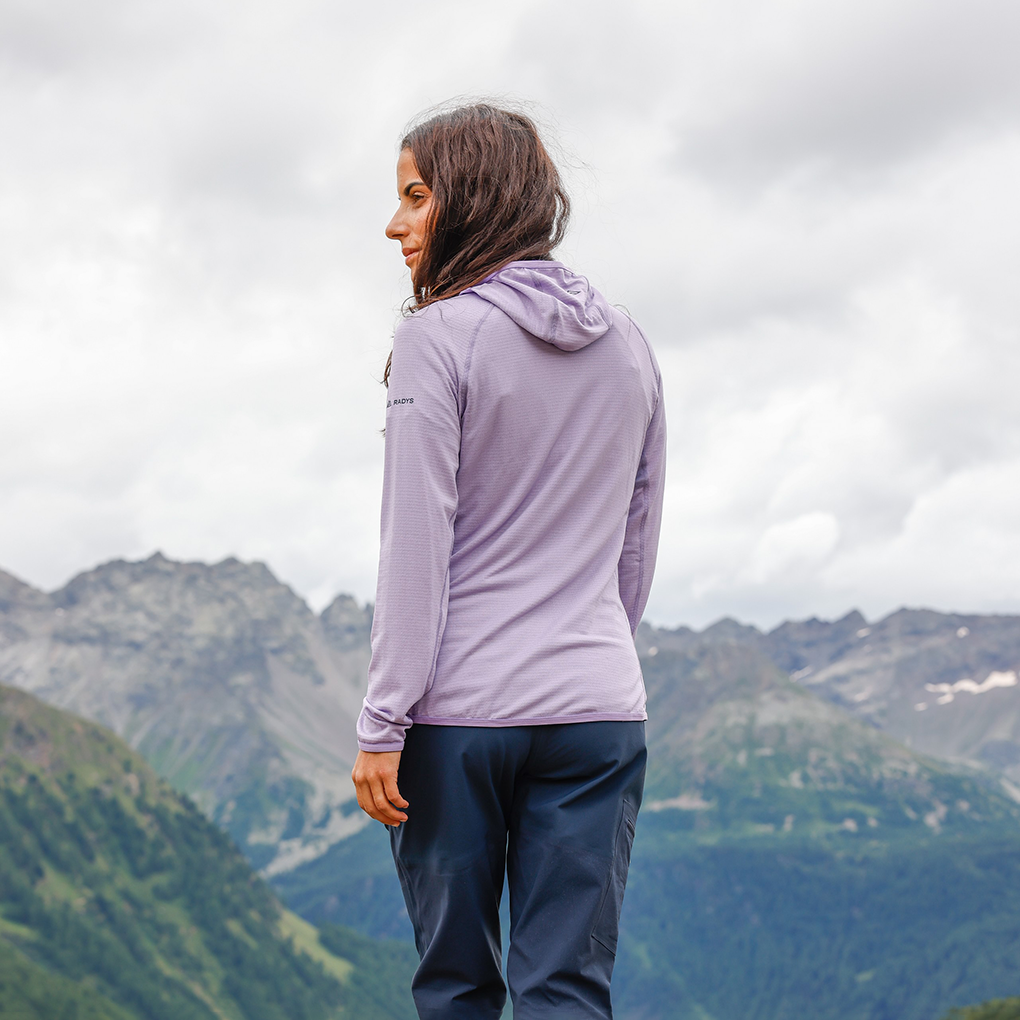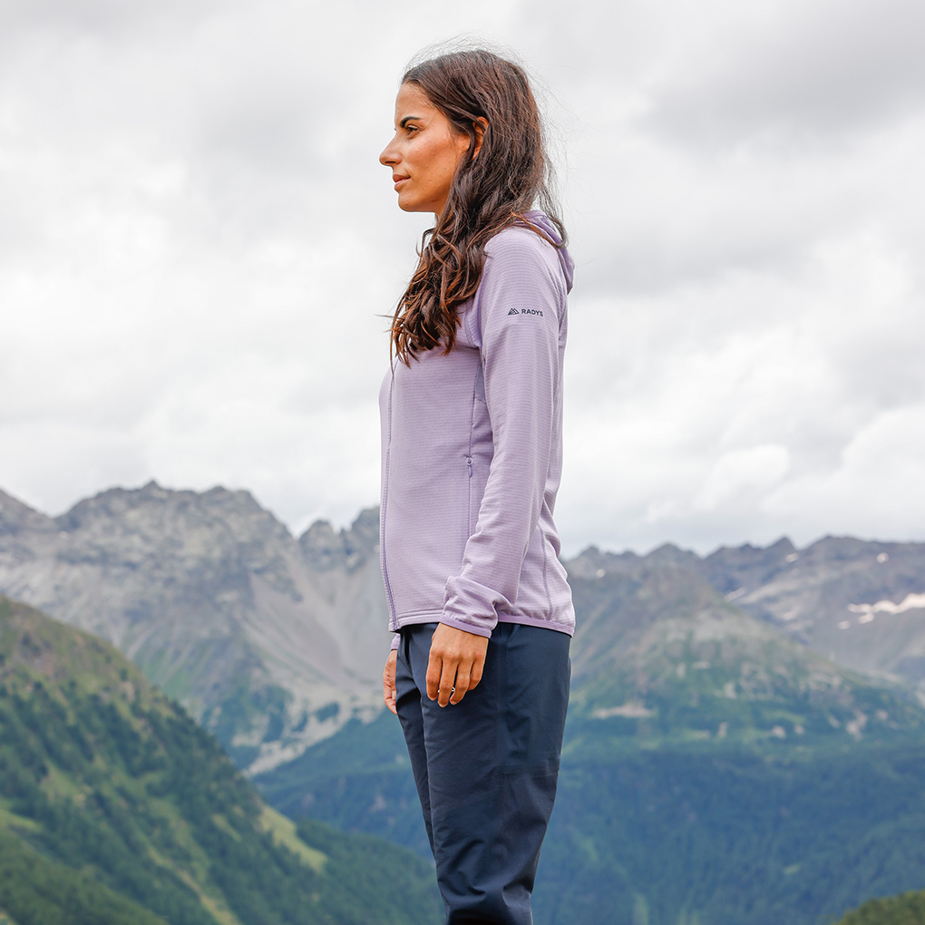 Bereit für jedes Abenteuer: Die R4 Light Stretchfleece Hoody Jacket W kombiniert Funktionalität und hohen Tragekomfort! Mit ihrer eng anliegenden Kapuze bietet sie zusätzlichen Schutz gegen Wind und Wetter, während zwei praktische Einschubtaschen ausreichend Platz für deine Essentials bieten. Auch hier kommen die atmungsaktiven Merino Einsätze unter den Armen zum Einsatz, die Bewegungsfreiheit und Belüftung fördern. Diese Jacke ist ideal für aktive Frauen, die Wert auf Qualität und Stil legen. Und das Beste: Sie wird in Europa gefertigt.